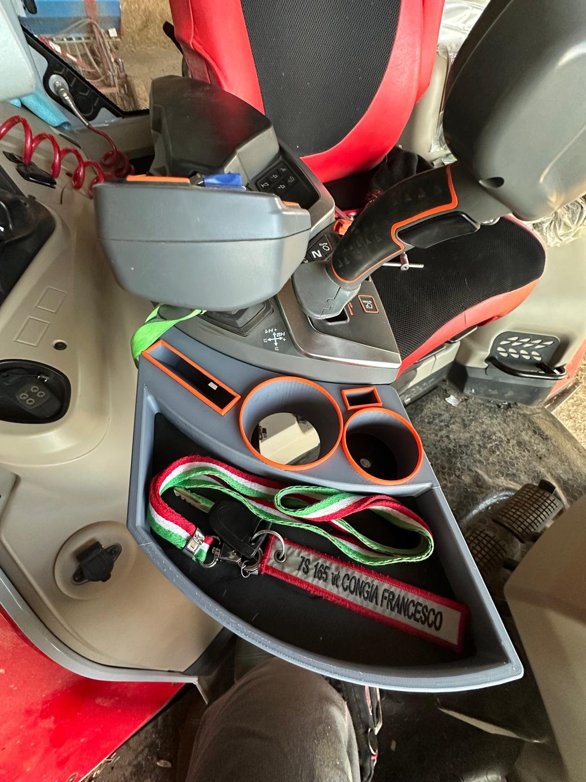 Massey Ferguson 5S serisi uyumlu kolçak sehpası. Bardaklık, telefonluk ve geniş depolama alanı ile kabin içinde konfor ve düzen sağlar. Dayanıklı ve kolay montajlı.