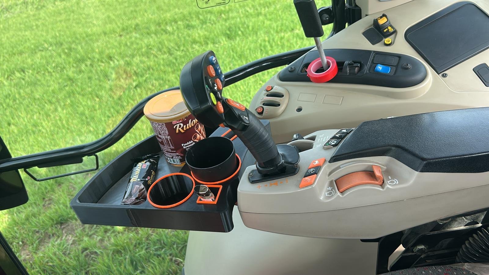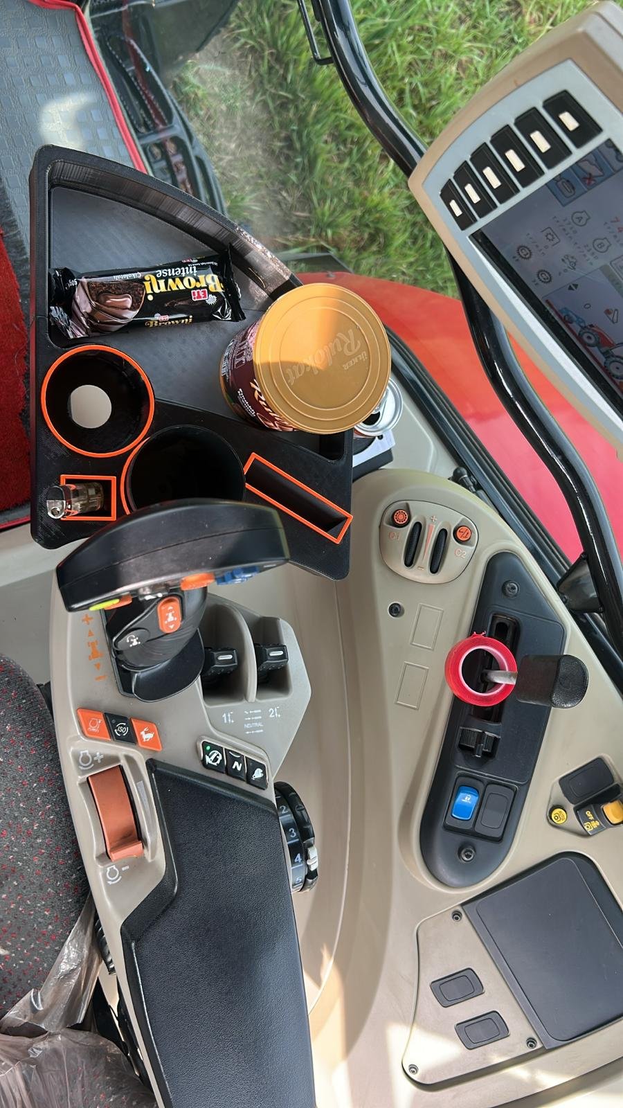 Massey Ferguson 7700 Dyna-6 uyumlu kolçak sehpası. Bardaklık, telefonluk ve geniş depolama alanı ile kabin içi konforu artırır. Dayanıklı ve kolay montajlı.